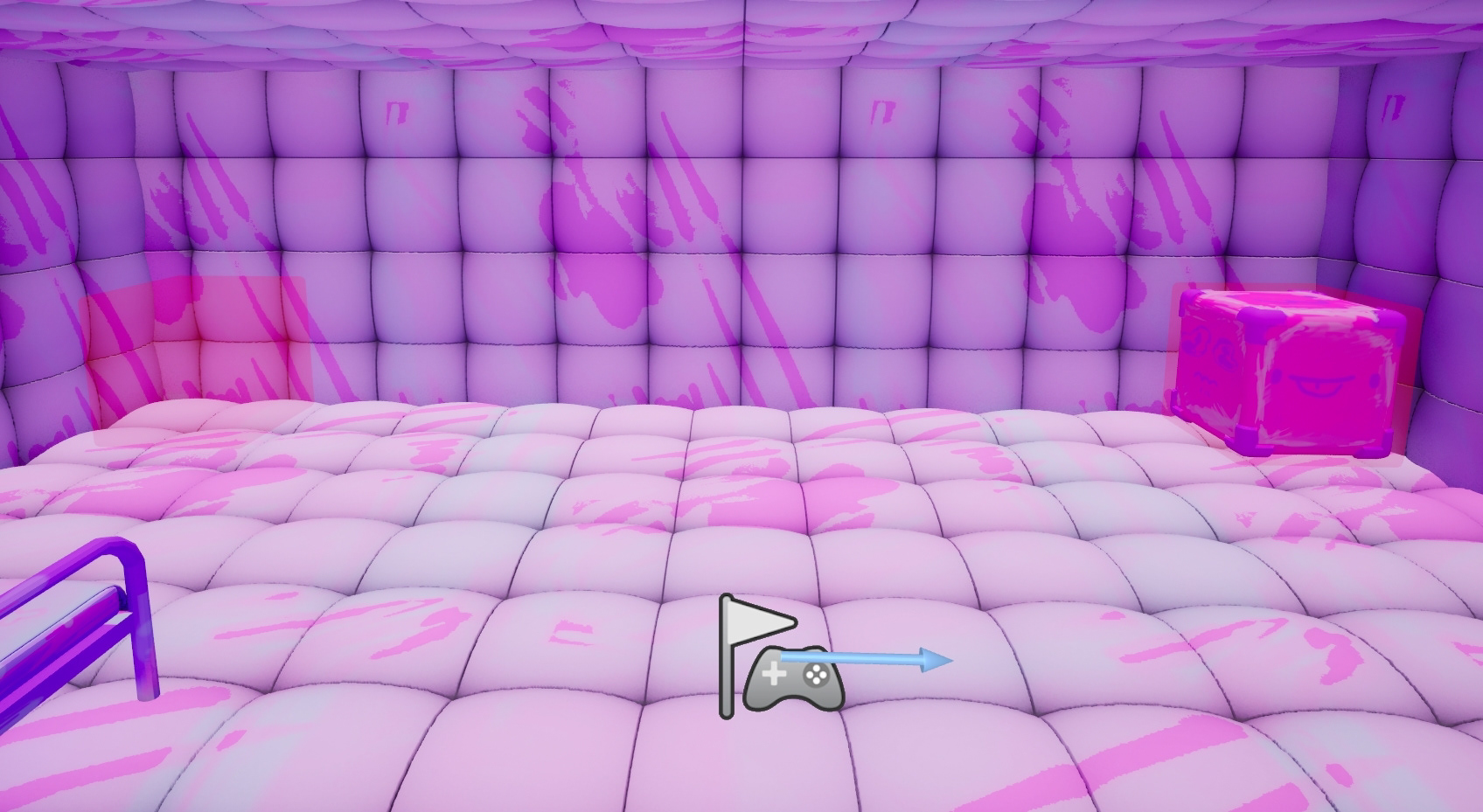 Below you can see how the cube chose a location to teleport to, the faint red area shows possible locations for the cube to teleport to. We will call these areas "OTP's" (Object teleport points). OBT's also had the player viewport check methods as they inherited from the "Detect offscreen" class. This meant that when the cube wanted to teleport it could find a location that was not currently in view. This allowed us to create the illusion of the cube only moving when your back was turned.